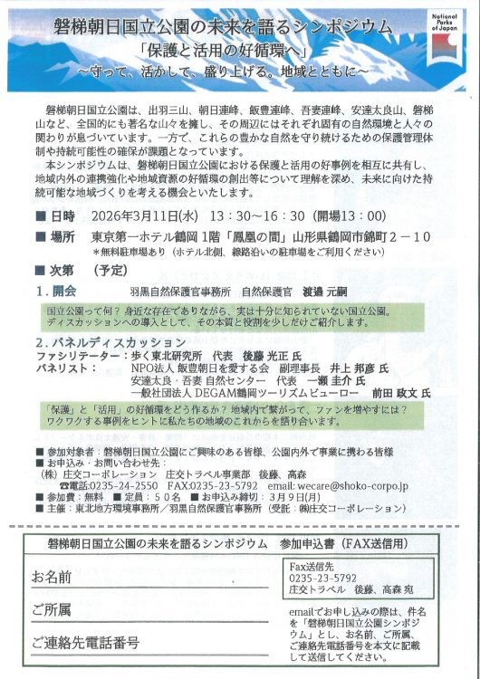 磐梯朝日国立公園の未来を語るシンポジウム開催のお知らせが届きました!