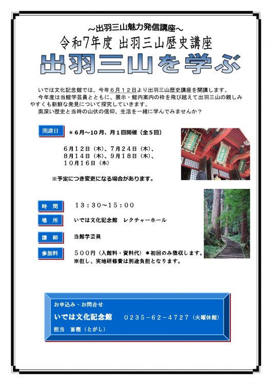 いでは文化記念館主催の生涯学習事業である、出羽三山歴史講座『出羽三山を学ぶ』の開講が決定いたしました!
